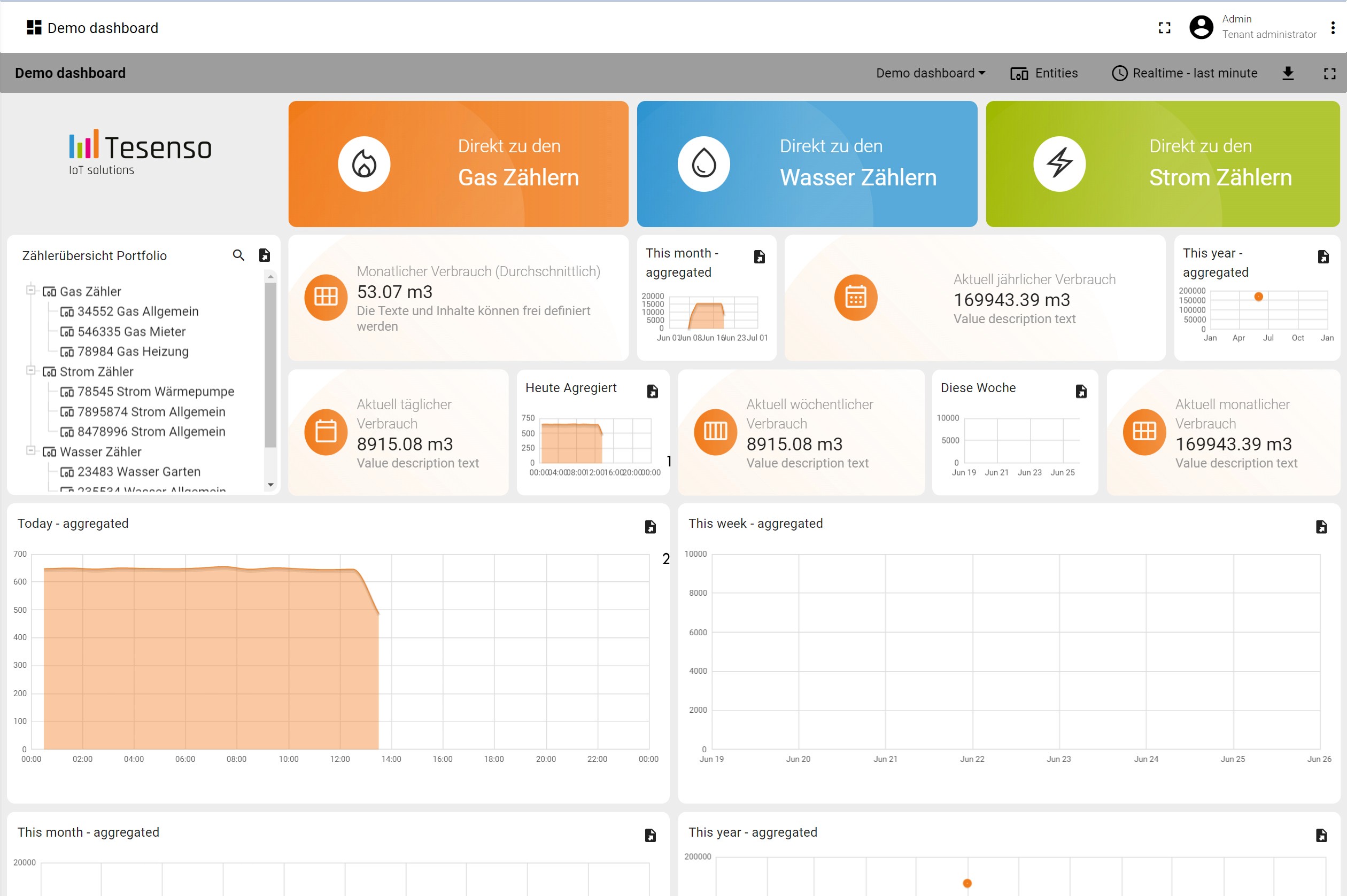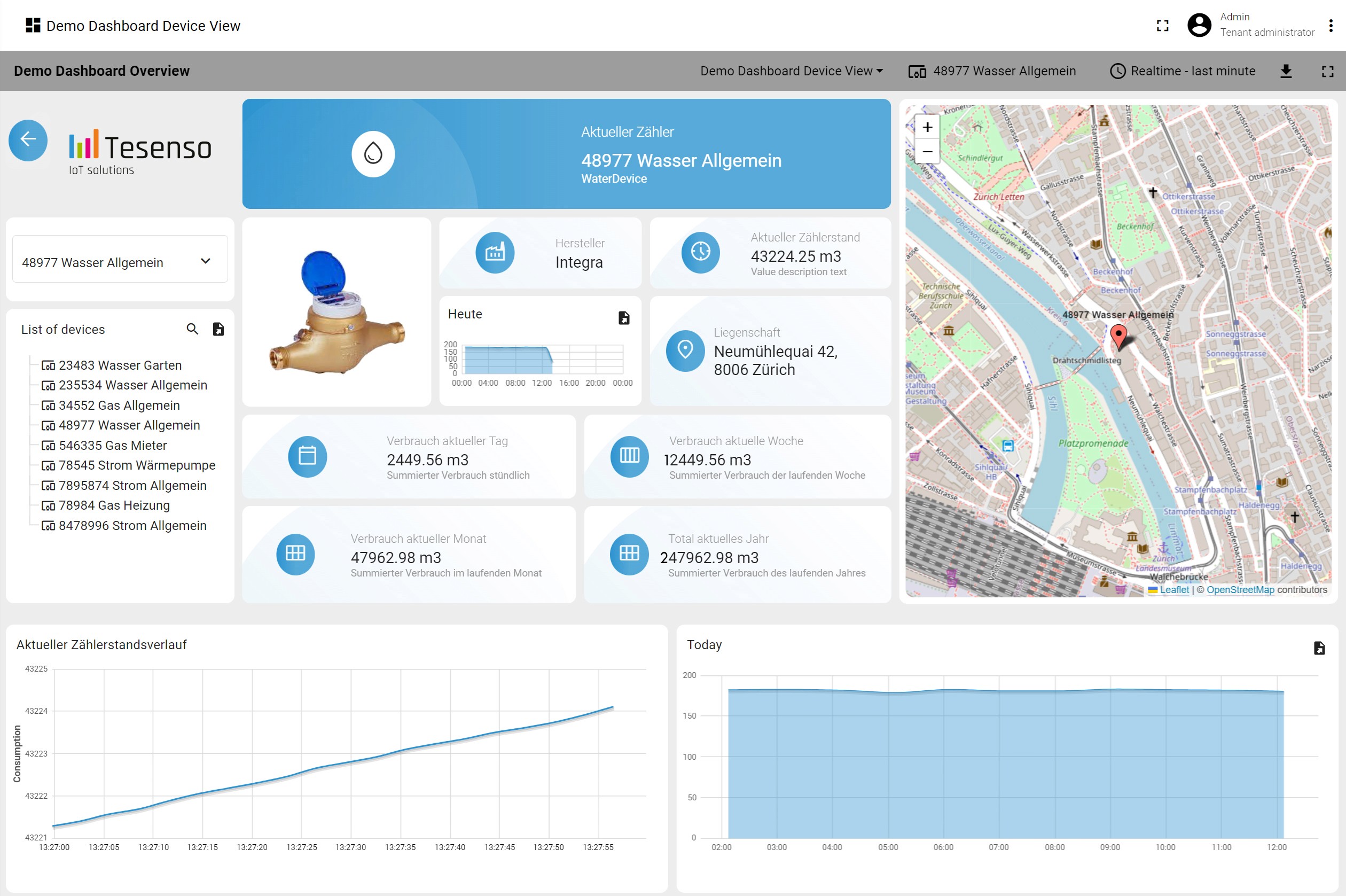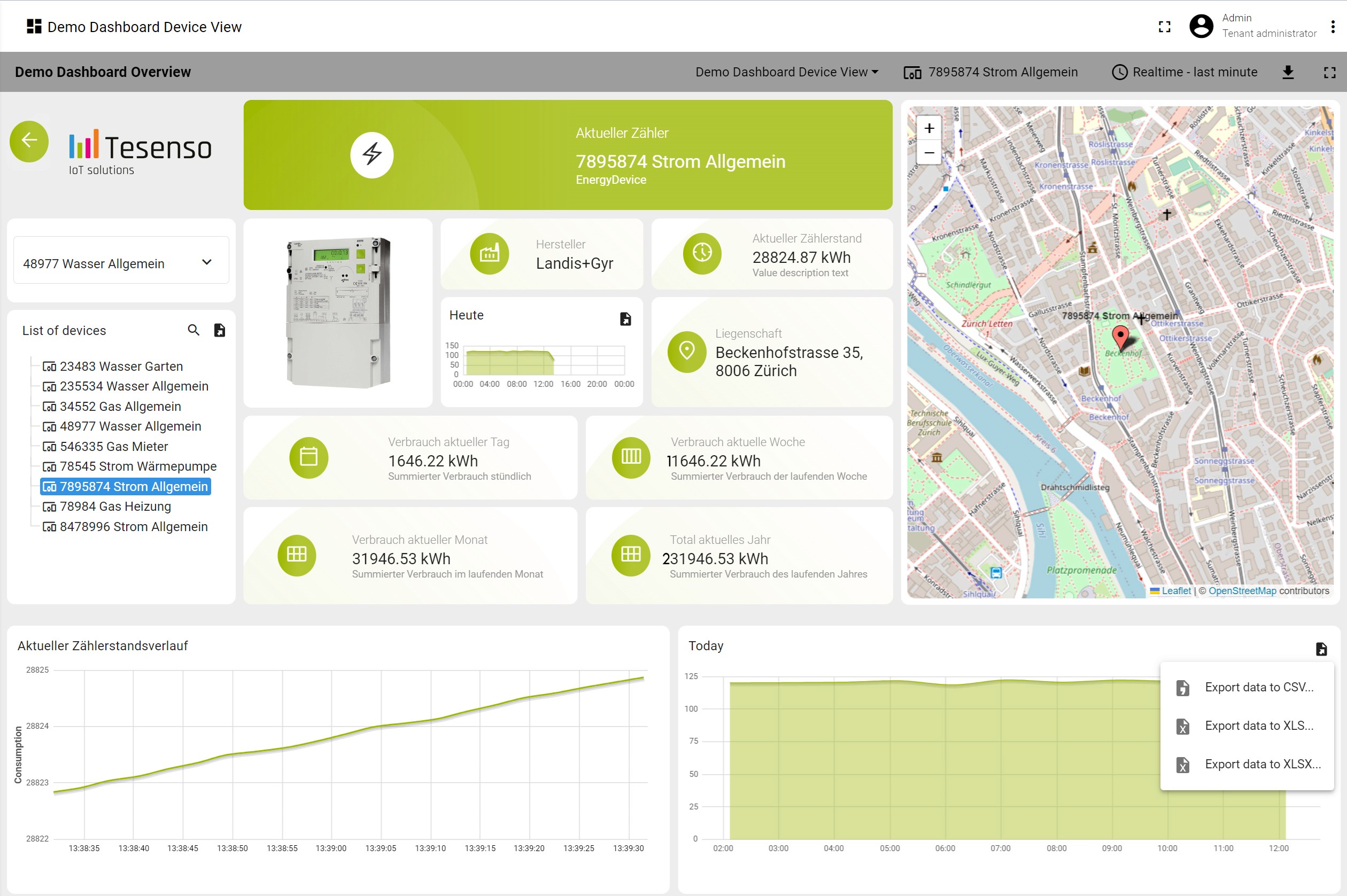 Sammeln und speichern Sie Daten auf skalierbare und störungsfreie Weise. Visualisieren Sie Ihre Daten mit integrierten oder benutzerdefinierten Widgets und flexiblen Dashboards. Teilen Sie Dashboards mit Ihren Kunden.